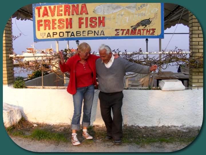 Vor der Fisch-Taverne in Petriti