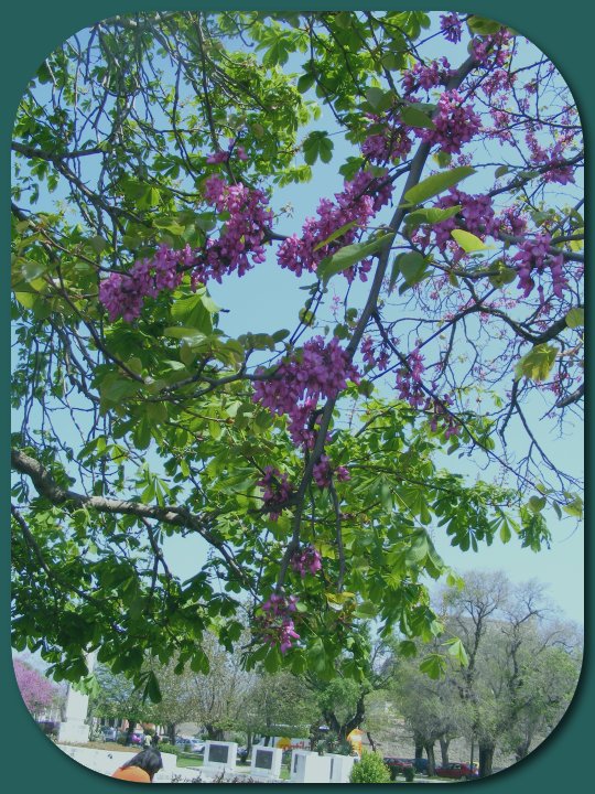 Bäume mit lila-farbenen Blüten in den Esplanaden von Corfu-Town
