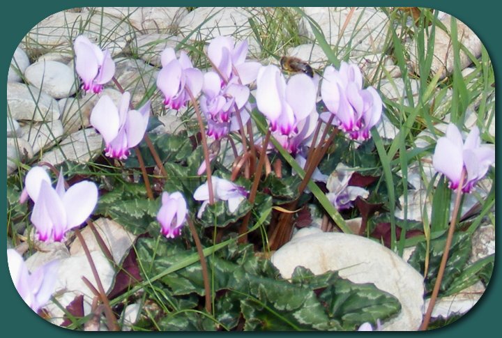 Alpenveilchen wachsen zwischen Kieselsteinen am Strand