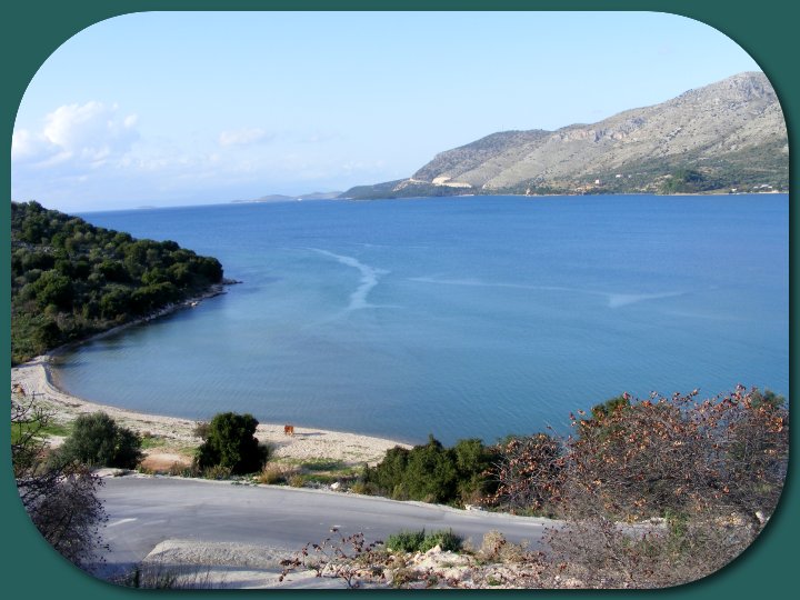 Blick in die Bucht von Plataria - unten am Strand sonnen sich zwei Kühe
