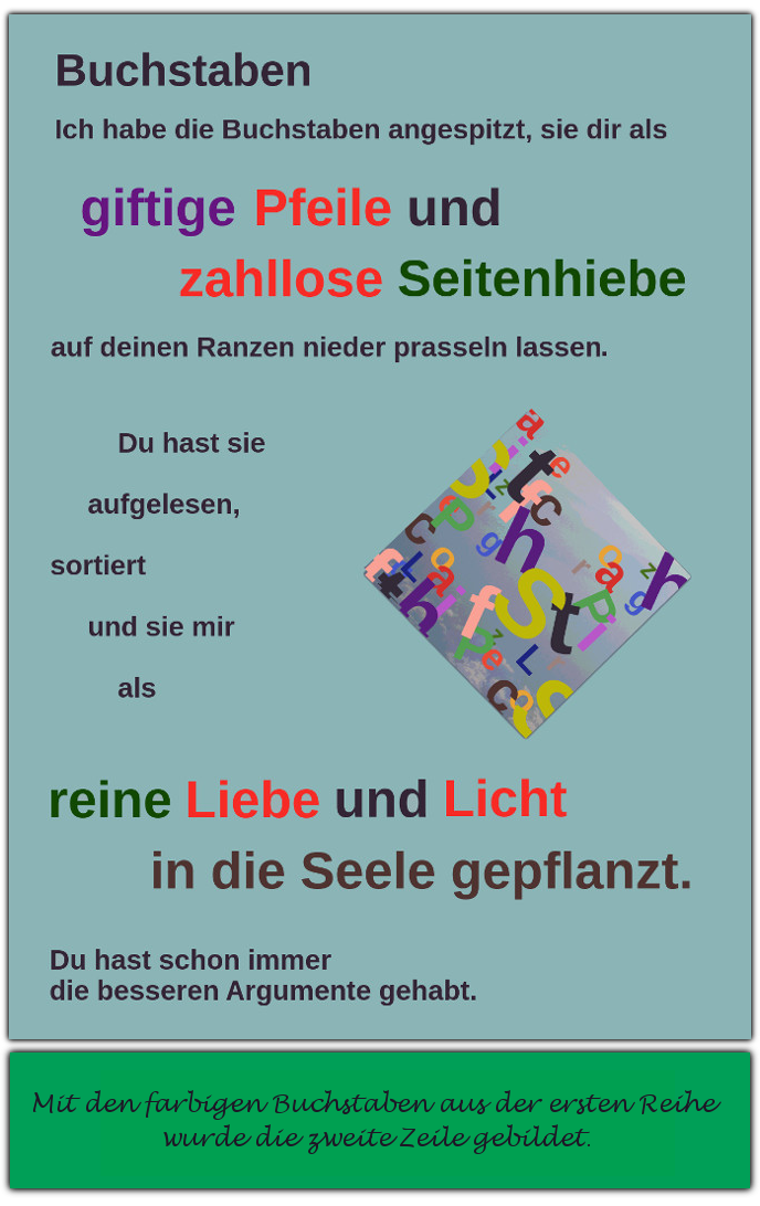 blaue Blümelein in dieser Mauerritze; Es riss das raue Dichterlein, auf jener Mauer Witze! ![]() |