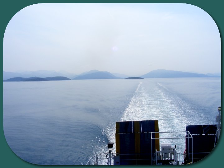 Die Fahrt mit der Fähre nach Kérkyra dauert 1 1/2 Stunden. Die Sonne läßt das Fähr-Wasser glitzern. Da es sehr diesig ist, sieht man die hohen Berge der Festland-Küste nicht.