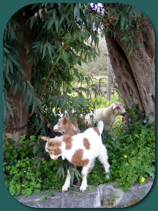 Die Ziegen und Schafe laufen im Dorf frei herum