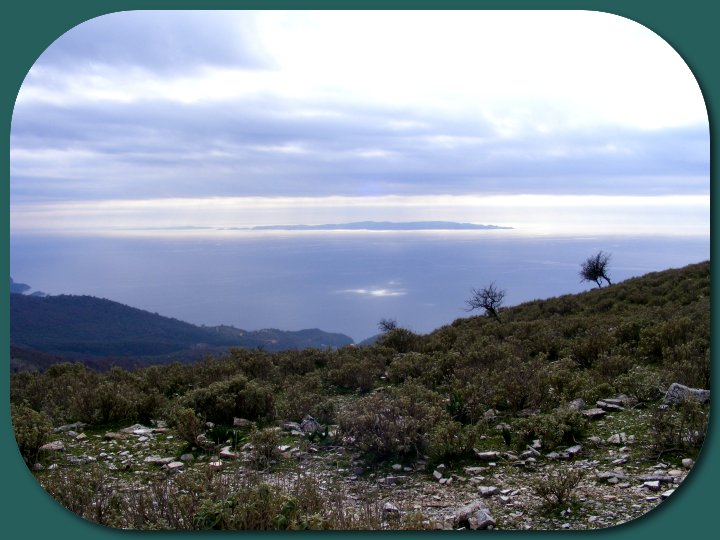 Sonne und Wolken tauchen die kleine Insel im Hintergrund in ein besonderes Licht