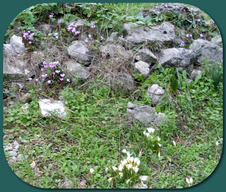 Zwischen den Oliven-Bäumen blühen Alpenveilchen und Krokusse