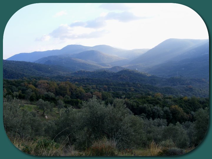 Blick auf die samtene Hügel-Landschaft hinter Plataria